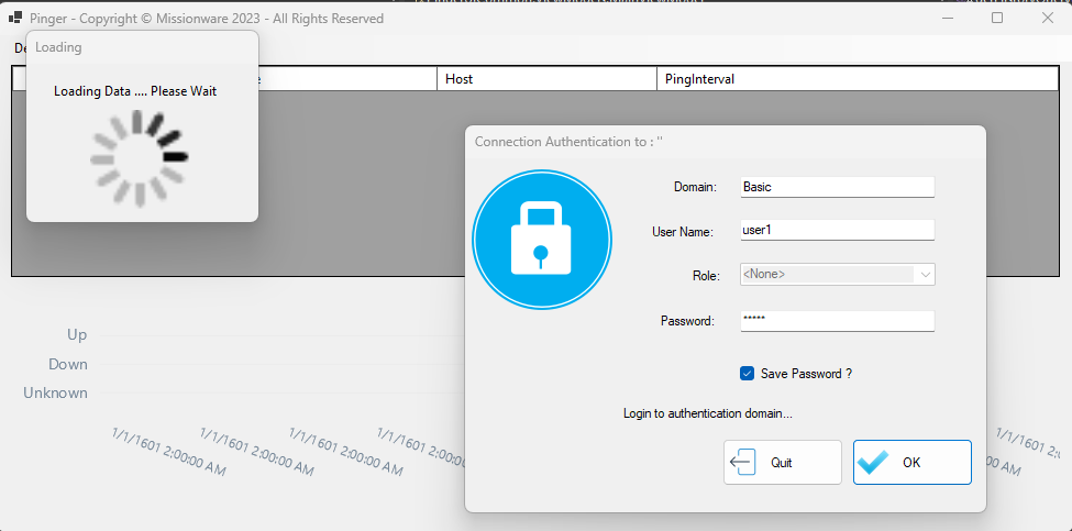 Run or Debug the PingerAgent. The PingerAgent is a Client of the Objects Server and requires to authenticate. For simplicity we have hardcoded the credentials.