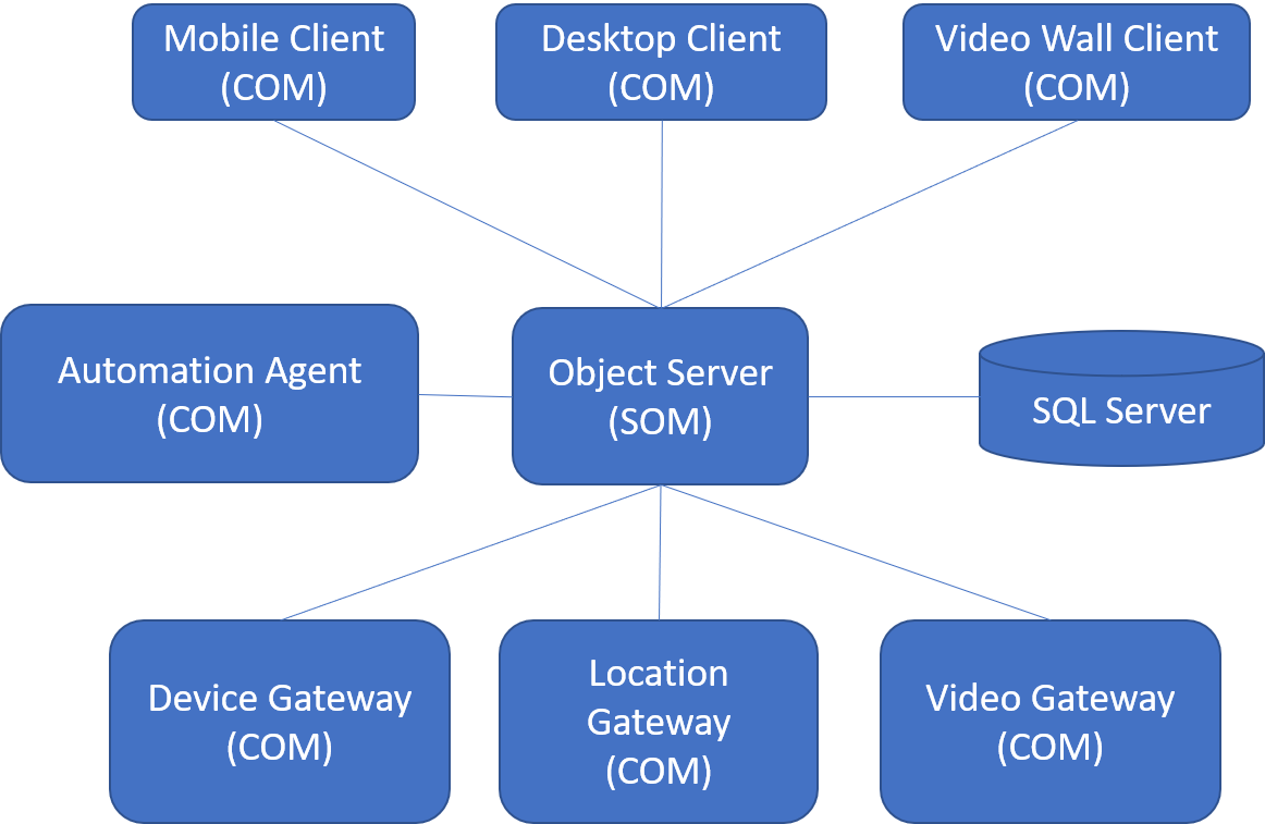 Cognibase equips developers with tools on both the server and client sides, streamlining the development of N-Tier applications. At the server end, the core component is the Server Object Manager (SOM). On the client side, it's the Client Object Manager (COM). However, these components can be combined in diverse configurations within the same process to create nodes tailored for specific tasks. For instance, our standard Object Server integrates a SOM with a managerial COM. Combining multiple COMs and/or SOMs can also facilitate system synchronization and aid in developing proxy and load-balancing solutions.